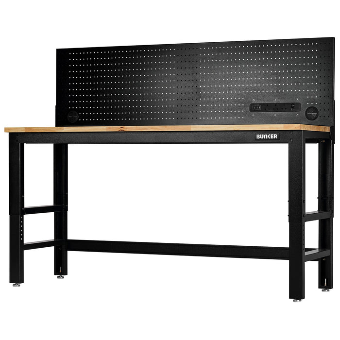 BUNKER® Workbench with Hardwood Worktop and Power Pegboard, 1830mm
